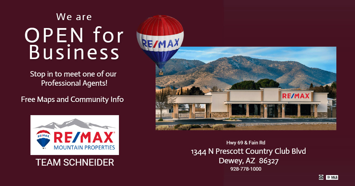 Our office is OPEN! We are located at 1344 N Prescott Country Club Blvd, Dewey at the intersection of Fain Rd and Hwy 69. Stop in and say hi!