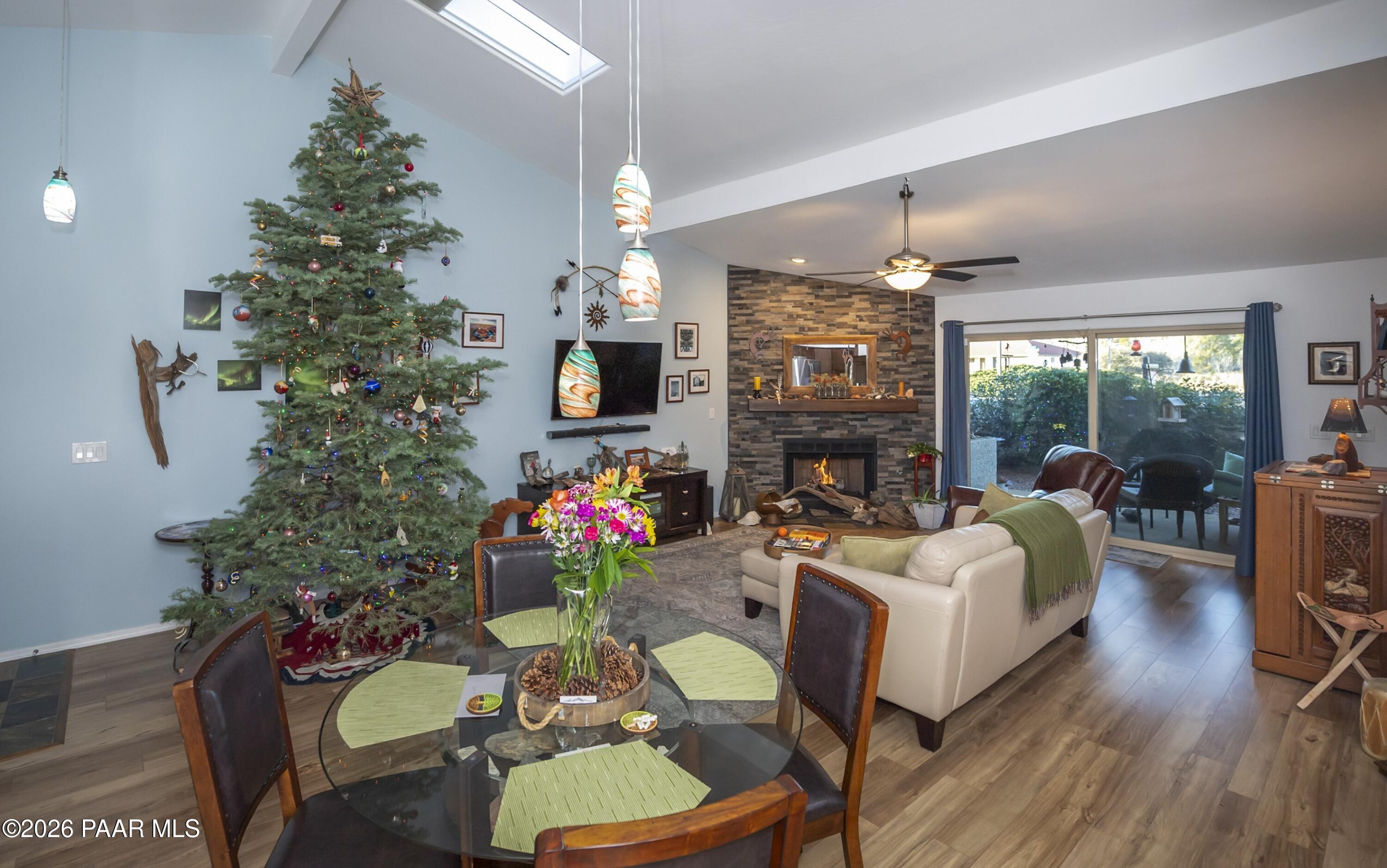 OPEN HOUSE SATURDAY 4/18 11-1.GOLF Community in COOL Prescott....90 miles from Phoenix !!! Move-in ready and fully remodeled! Low-maintenance 2 bedroom, 2 bathroom townhouse offers 1,198 sq ft and is located in the highly desirable Prescott Country Club. Enjoy an ideal location just a short walk to the pool and clubhouse. The home is light and bright with an open-concept layout featuring vaulted ceilings, skylights, and a cozy fireplace with floor to ceiling stone-look tile and a wood mantel. Step outside from the living room to a nice covered patio--perfect for relaxing and enjoying the outdoors. The beautifully updated kitchen is sure to impress with newer cabinetry, granite countertops, and stainless-steel appliances. Both bathrooms have been thoughtfully updated with granite countertops, vessel sinks, modern cabinetry, and upgraded light fixtures. Additional recent upgrades include newer windows, a newer roof, and attractive vinyl plank flooring throughout. Come view this turnkey property today! HOA covers exterior maintenance, roof, sewer and front yard landscaping.