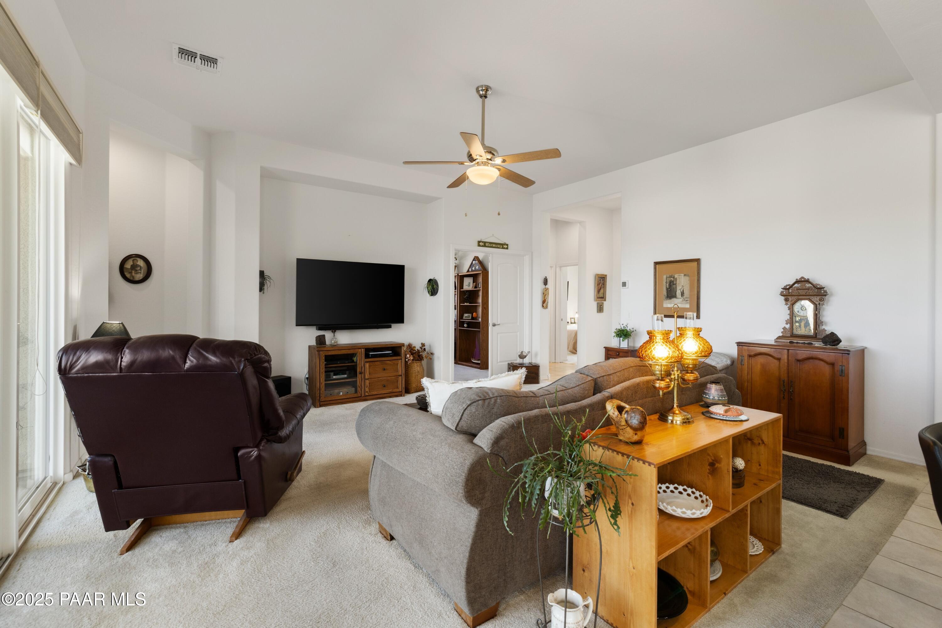 Fantastic Home on a .16 acre/Corner Lot in Quailwood backing VACANT Common area with Golf Course & Mountain VIEWS!!! Home has 1492 sq ft, 3Bedrooms/2Bathrooms/2CarGarage, Great Room Concept, Ceiling Fans, attractive 12'' Tile and Neutral Carpet throughout, Pleated Levolor Shades, and upgraded lighting. Kitchen is well appointed with Maple Cabinetry, Soft Close Doors/Drawers, GRANITE Countertops, White Appliances (Inc. Fridge), ISLAND Sink, Breakfast Bar, Large Pantry, & Breakfast Nook. Master is Spacious, has Dual Sinks, Tub/Shower Combo, & Walk-In Closet. Additional features include Lg Laundry Room with Washer & Dryer, NEW Roof, Paver Driveway/Walkway, Covered Patio + Extended Open Patio, Fenced Back Yard with VIEW Fence to enjoy the Bradshaw Mountains and Golf Course Views, Superior Landscaping, & is in Turn Key Condition!!!!